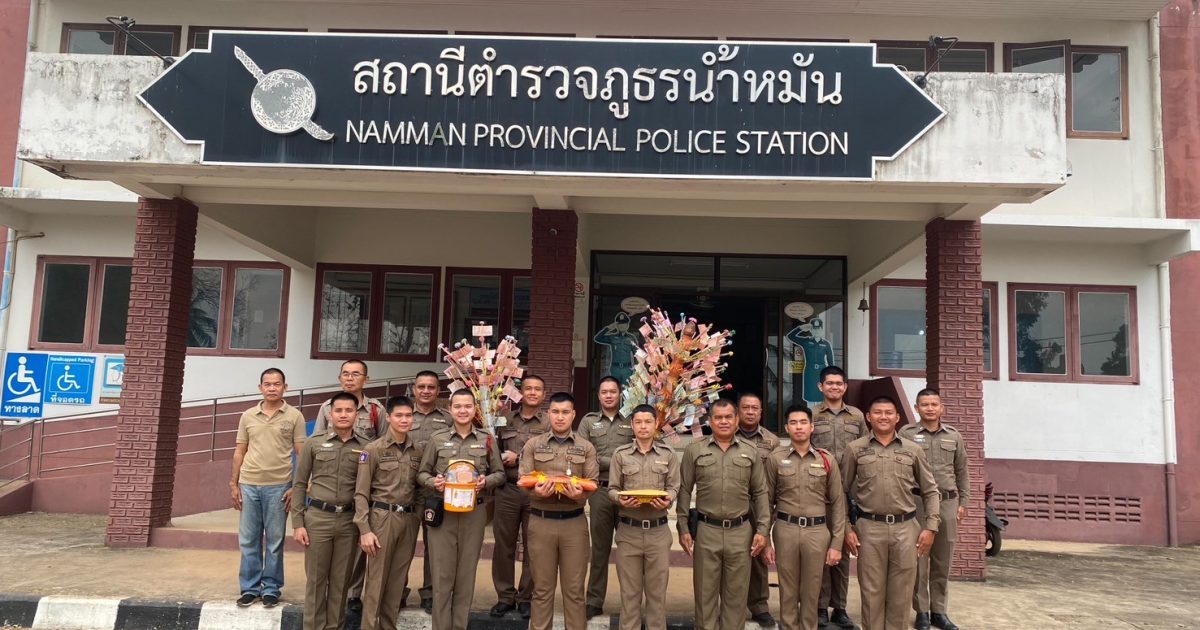 พ.ต.ท.นพพล พิมพ์เอี่ยม สว.สภ.น้ำหมัน มอบให้ เจ้าหน้าที่อำนวยการเป็นคณะกรรมการในการทอดผ้าป่าสามัคคีสมทบทุนสร้างรั้วหน้าสถานีตำรวจภูธรน้ำหมัน